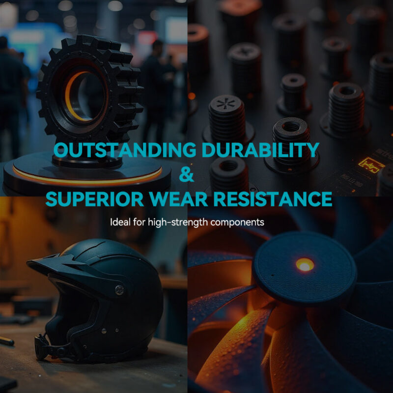 PA12-CF מציע יחס חוזק-משקל יוצא דופן, אידיאלי ליצירת רכיבים קלי משקל אך חזקים. מושלם לשלדות תעופה וחלל, חלקי רכב או ציוד שטח הדורשים עמידות גבוהה ללא תוספת משקל או סרבול.