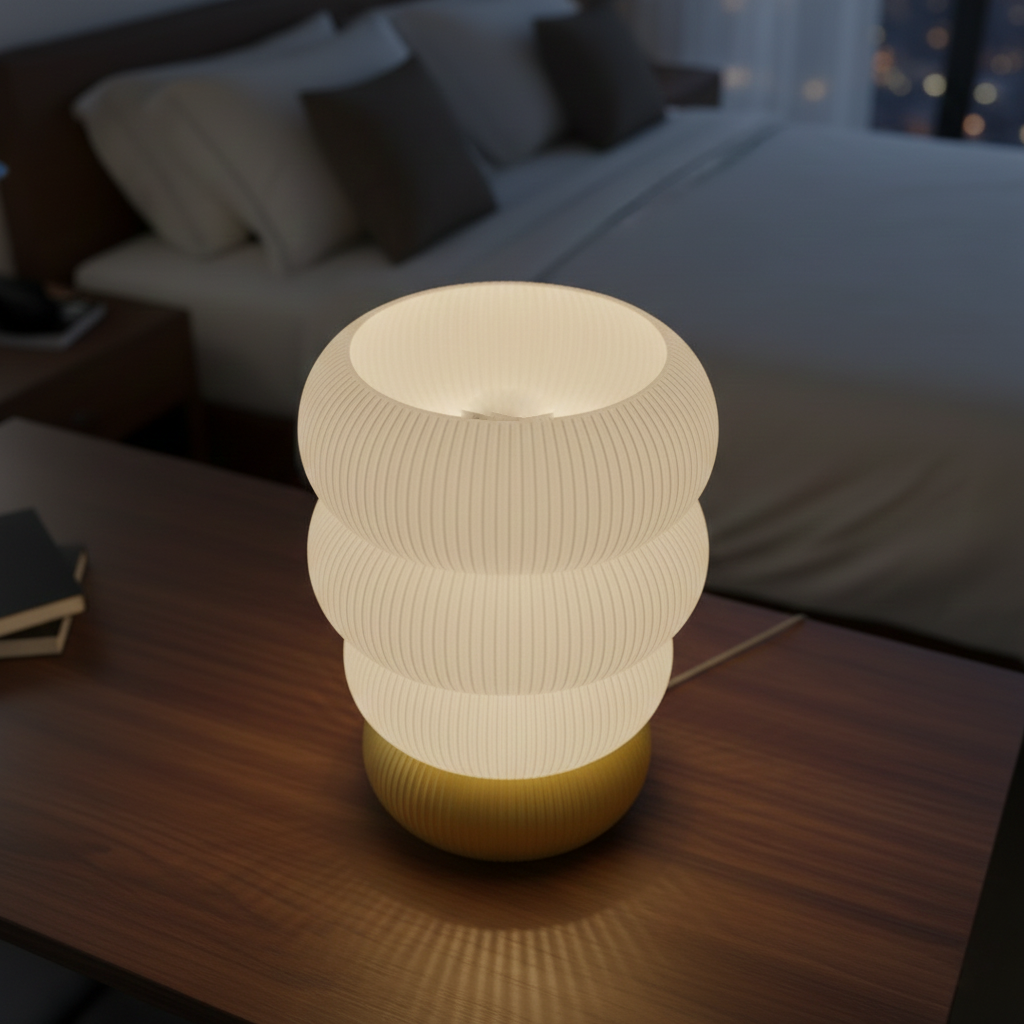 ♻️ גוף התאורה מיוצר כולו בטכנולוגיית הדפסת תלת-ממד, עשוי מחומר PETG איכותי וידידותי לסביבה, המקנה לו עמידות ומראה מודרני עם קווי דפוס עדינים.