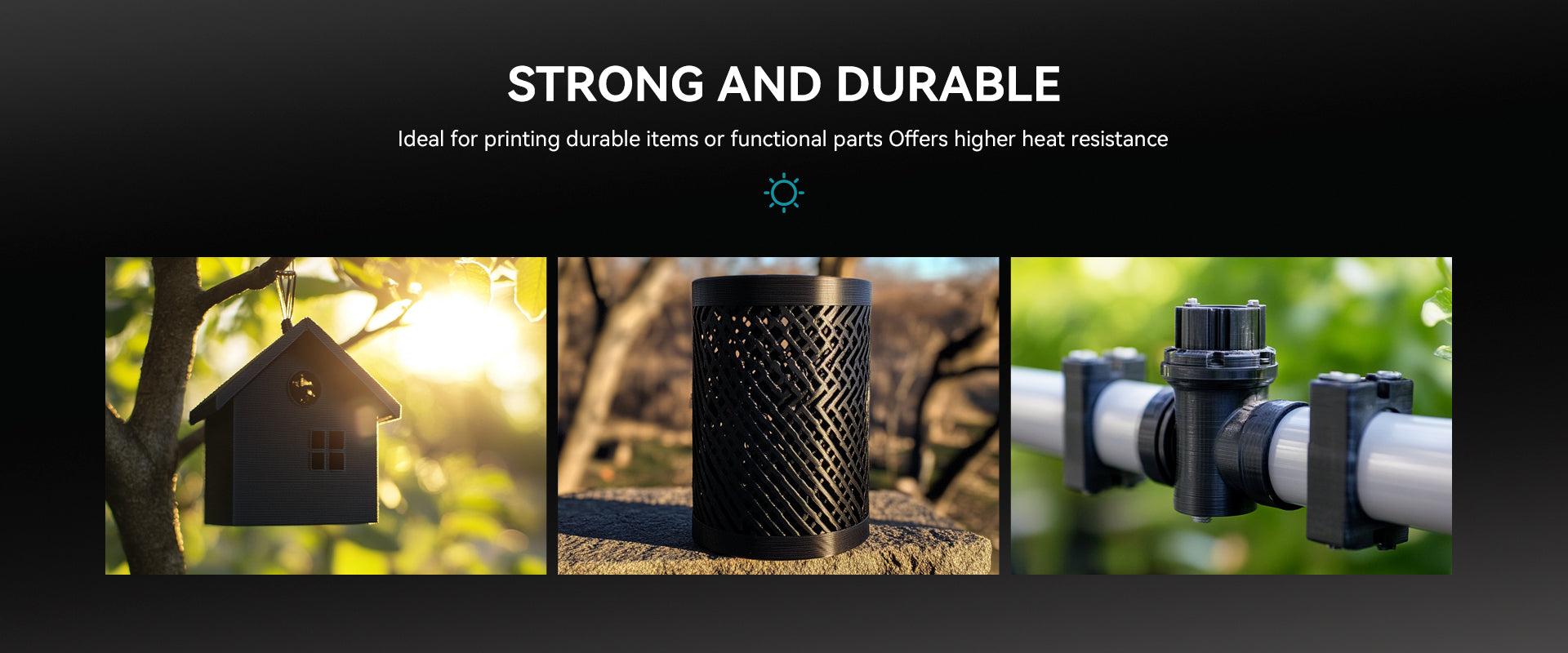 הפילמנט מצטיין בעמידות בפני בלאי ושחיקה ומתאים במיוחד לחלקים הנתונים לשימוש אינטנסיבי ועומס כבד, ובכך מבטיח אורך חיים ארוך יותר להדפסות שלך.