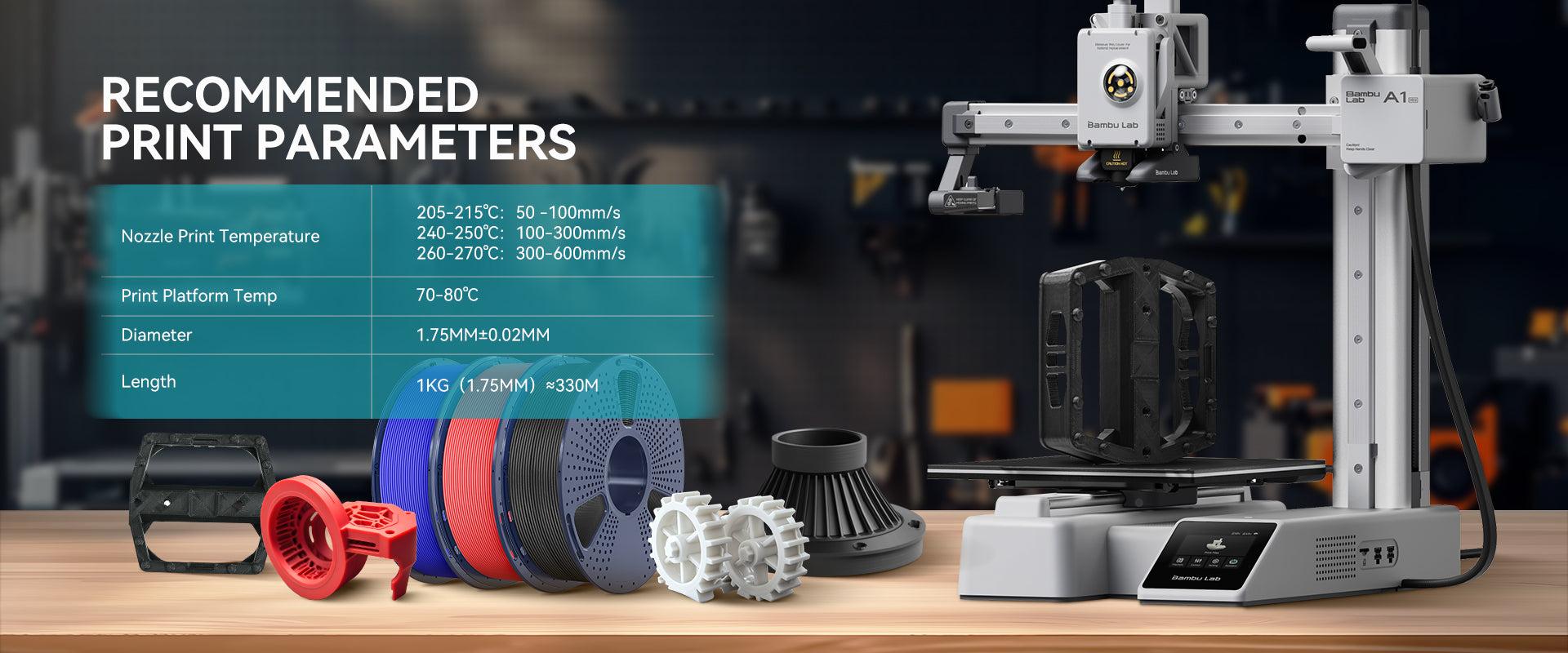 ביצועי הדפסה במהירות גבוהה – הפילמנט מותאם למהירויות הדפסה הנעות בין 50 ל-600 מ"מ/שנייה. הוא תוכנן להדפסה מהירה מבלי להתפשר על האיכות, ומאפשר לכם לייצר יותר בפחות זמן. קבלו הדפסות חלקות ומהירות יותר, עם דיוק רב וטשטוש של קווי השכבות.