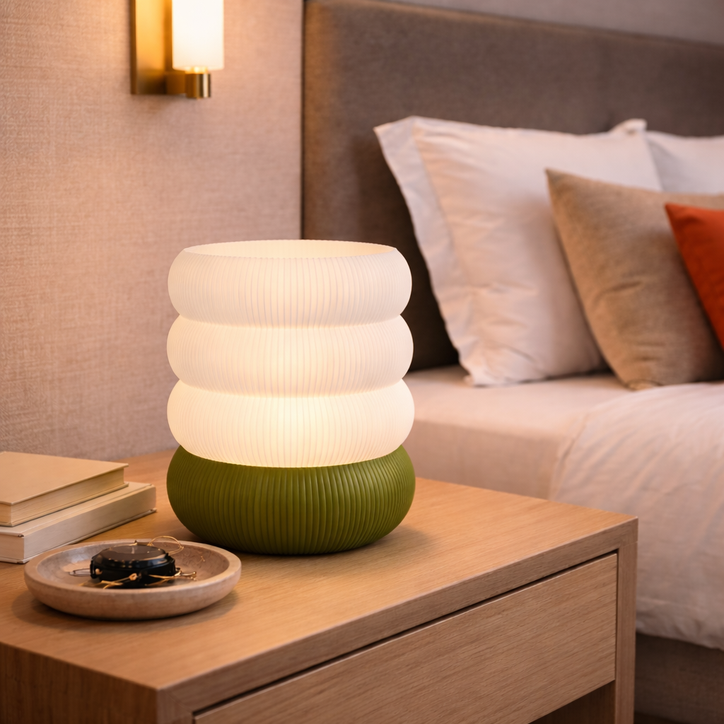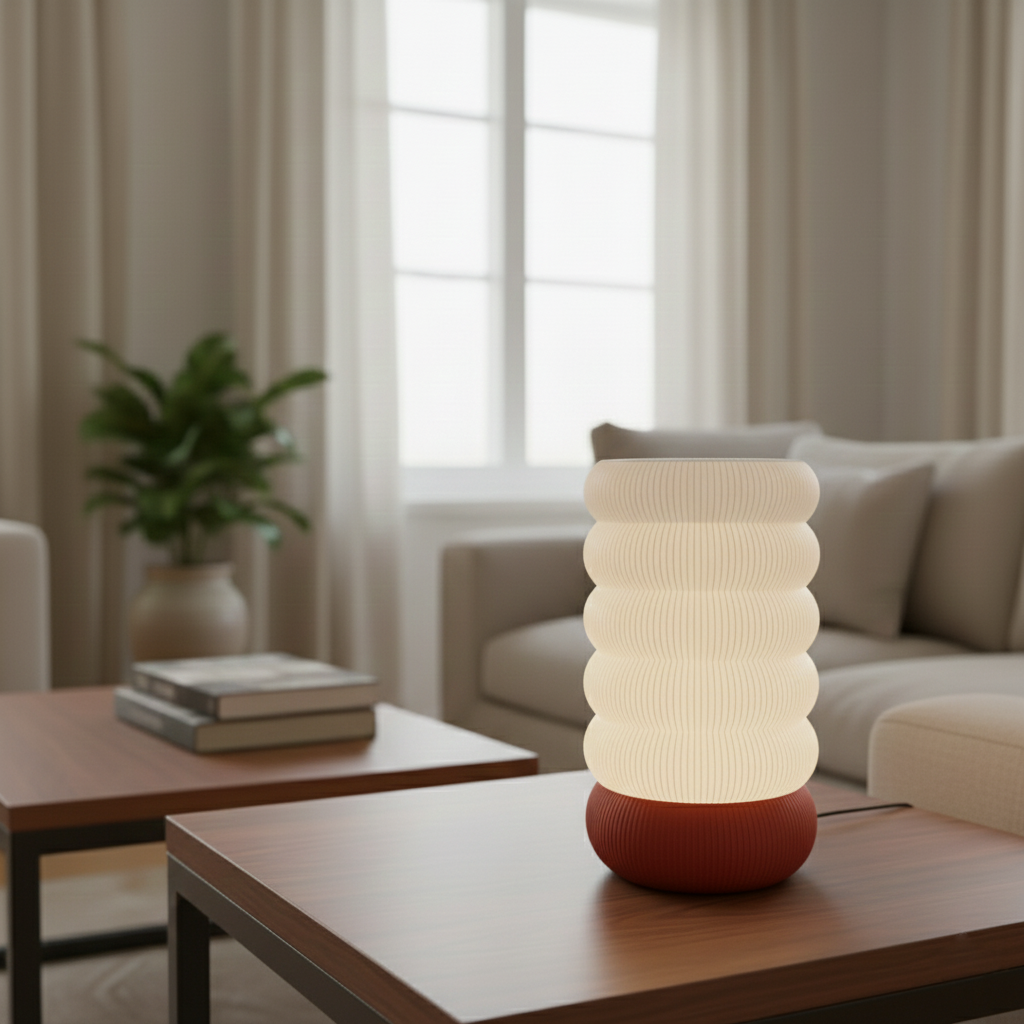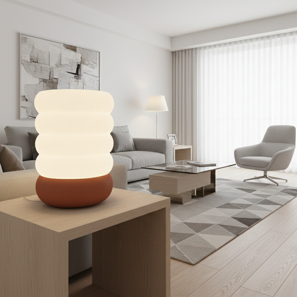 ♻️ גוף התאורה מיוצר כולו בטכנולוגיית הדפסת תלת-ממד, עשוי מחומר PETG איכותי וידידותי לסביבה, המקנה לו עמידות ומראה מודרני עם קווי דפוס עדינים.